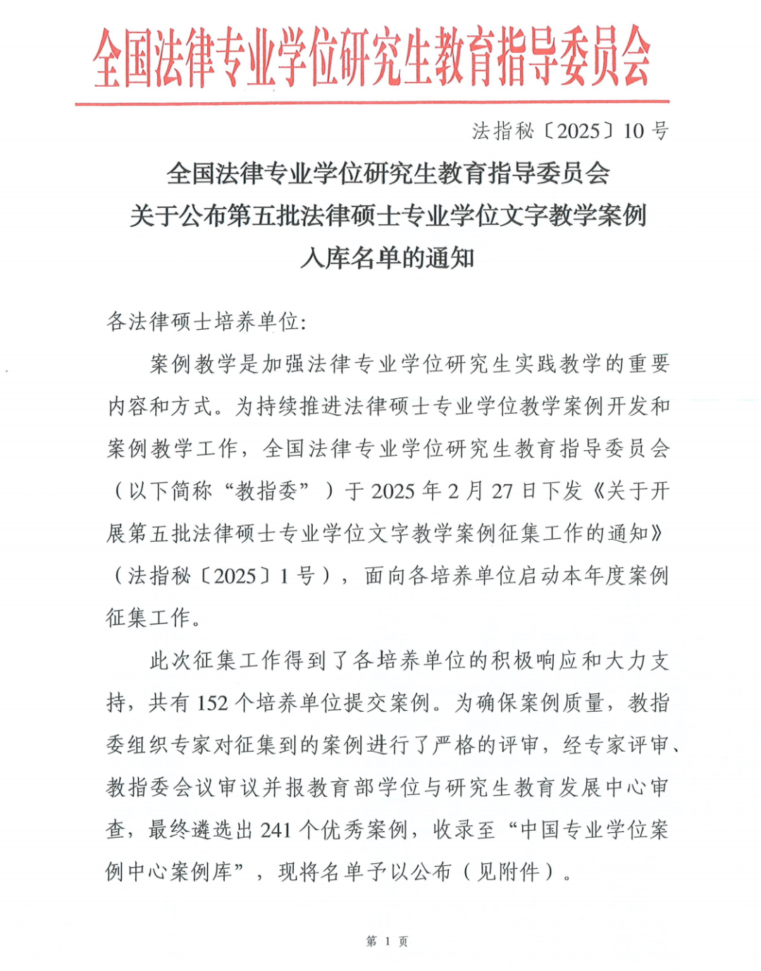 我校法学院2篇教学案例入选中国专业学位案例中心案例库