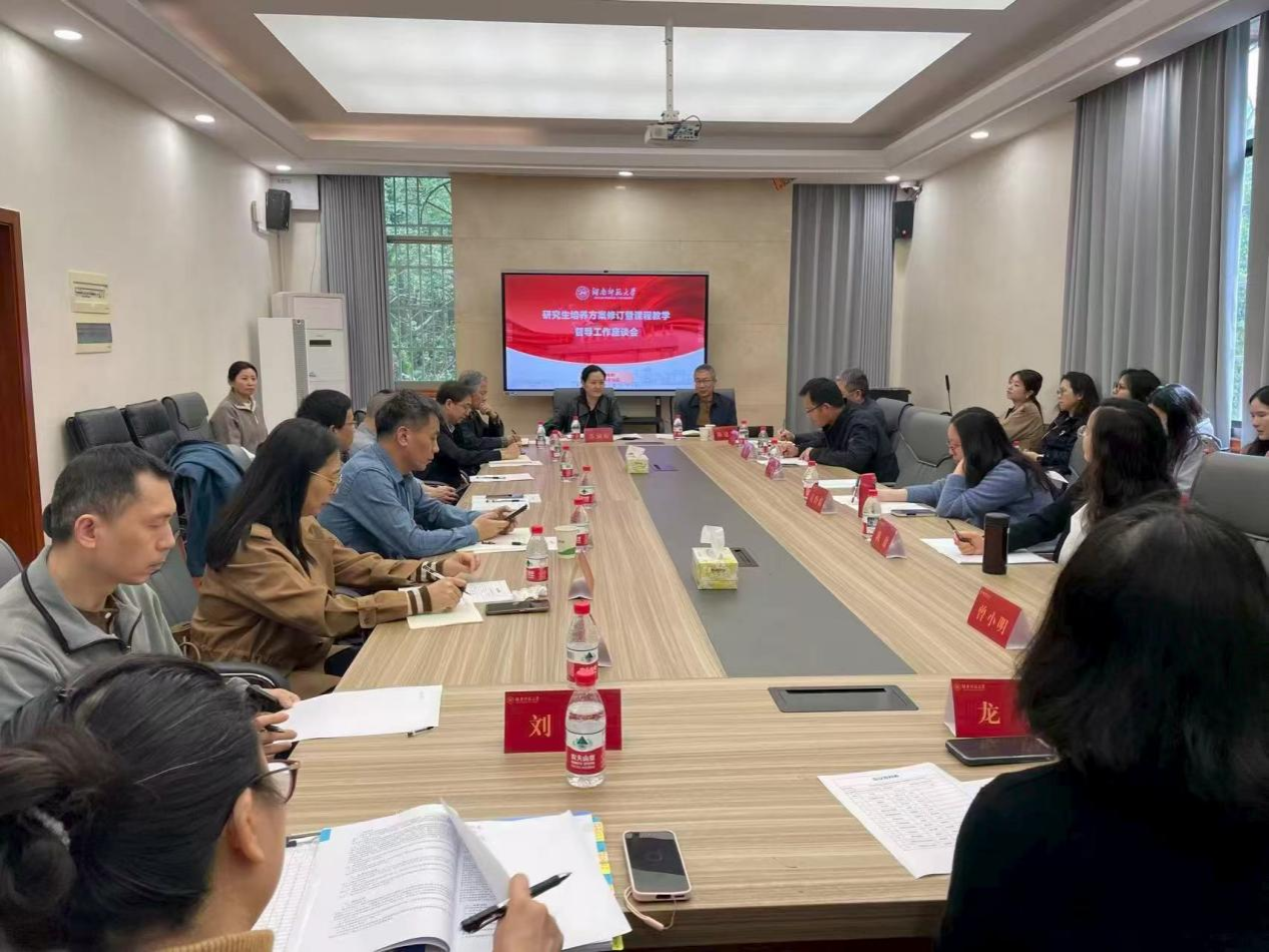 (通讯员 宋雪梅 牛玉)4月16日下午,我校研究生培养方案修订暨课程教学督导工作座谈会在研究生院二楼会议室召开。校研究生教育督导委员会委员陈建初、王健荣,部分二级学院分管研究生教学工作副院长、导师代表、研办主任及研究生院培养科负责同志参加会议。会议由研究生院副院长苏涵琼主持。